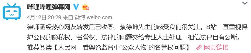 B站回应得不慌不忙,还附了个人民网关于舆论中公众人物名誉权问题的文章……