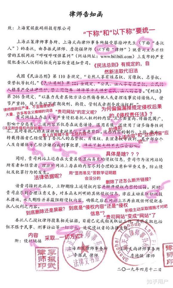 不光粉丝团有所行动,工作室也义正言辞地给B站发了律师函……