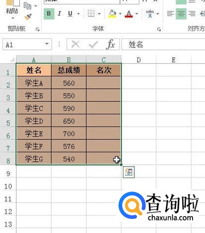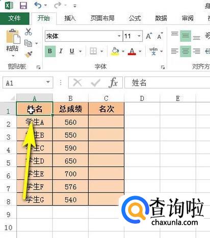 鼠标放在数据区域左上角的单元格:A1单元格。点击一下。