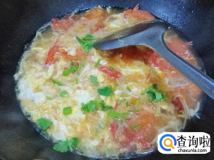 再次煮开后,加入备好的鸡蛋液,从锅边转一圈倒入蛋液,蛋花浮出汤面就OK,关火加入适量食盐、味精,喜欢胡椒的可以加入胡椒粉,撒上葱花和香菜,淋入香油,我们的西红柿金针菇蛋花汤就做好了。