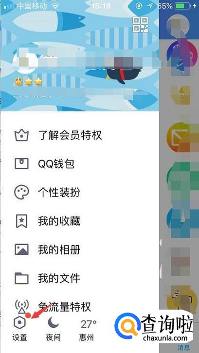 首先我们登录qq后点击左上角的头像进入到设置功能里面。