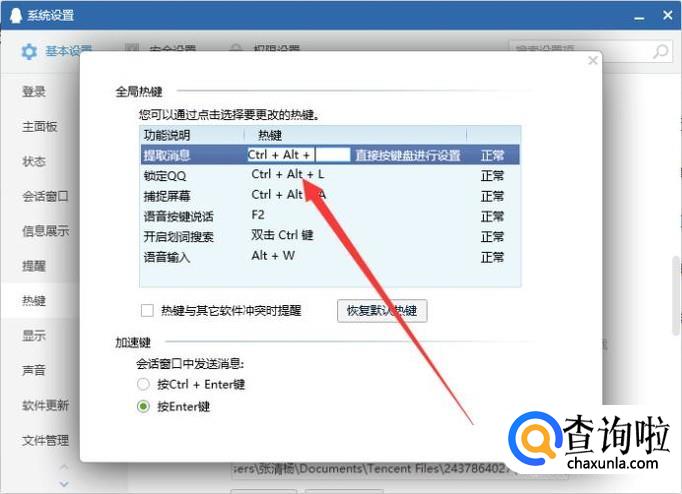进入之后,点击“热键”即可将其修改,如图所示。