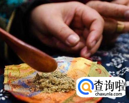 在缝好的花布上面放上香料,可以是玫瑰或薄荷等有香气的香料,也可以是艾叶、苍术等中药香料,既可以闻香,又可以驱虫。