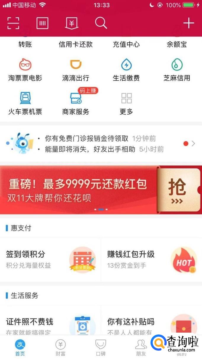 首先在我们的手机桌面上找到支付宝并点击它,如下图所示。