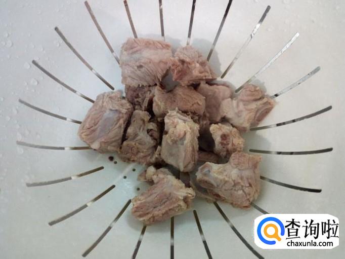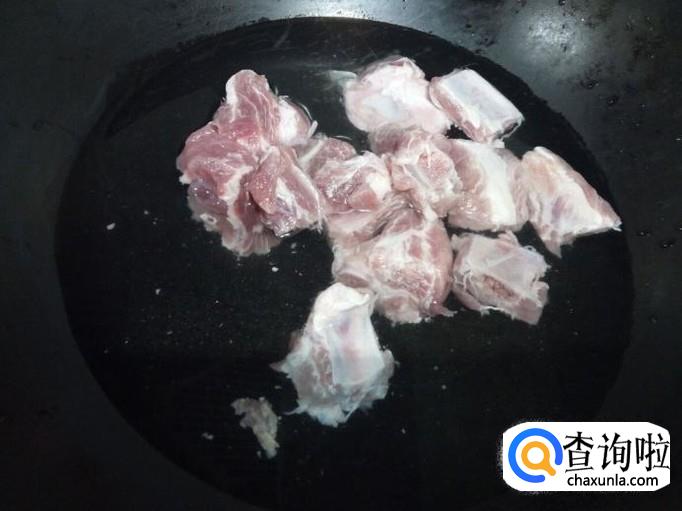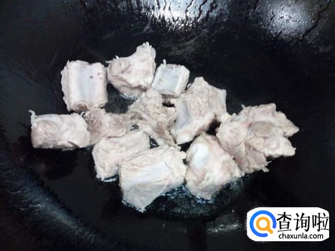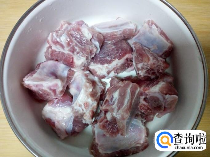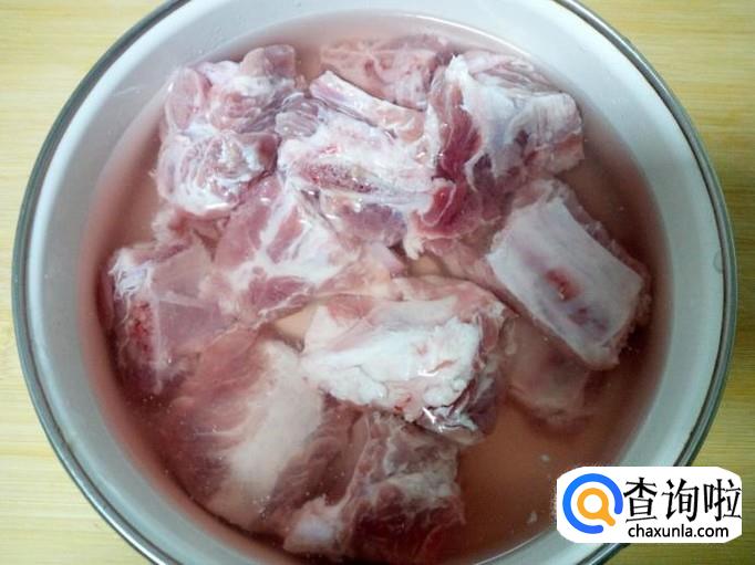 排骨剁成块,放入冷水中浸泡,去除血水。然后用水清洗干净,控干水分。