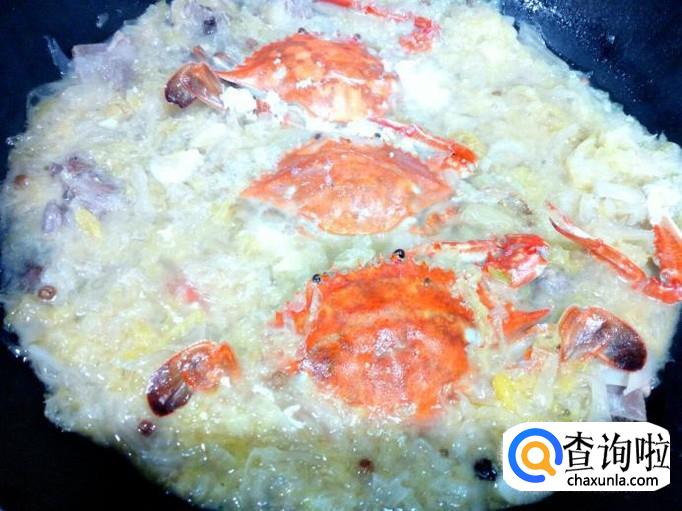 酸菜炖至十分钟的时间,然后放入螃蟹再炖三分钟的时间,放入味精,关火即可。