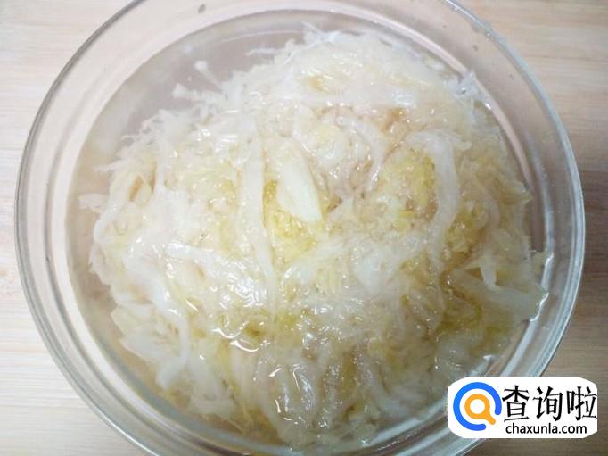 酸菜放入水中浸泡,然后用水投洗干净,攥干水分(不喜欢吃过酸的口味,酸菜要多泡一会)。