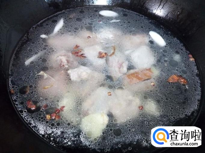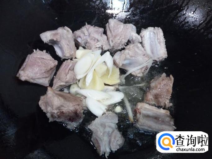 锅里放入少量的油加热,油热后放入排骨翻炒,放入葱,姜,蒜,料酒,少许白糖,少许醋。翻炒一分钟的时间,然后放入水,水没过排骨,放入花椒,八角,桂皮,大火烧开,转小火慢炖。