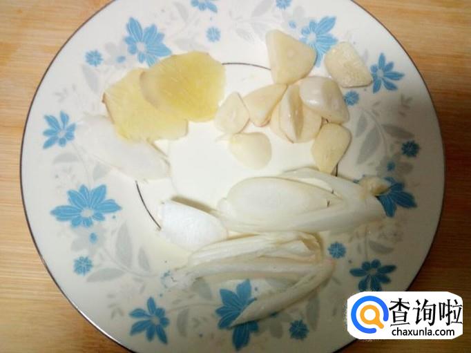 切好葱,姜,蒜备用。