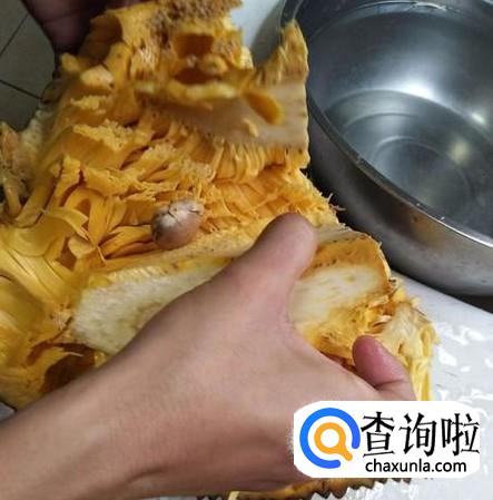 切菠萝蜜前,刀上轻微的抹一点点花生油,带上一次性手套,这样可以避免汁液粘上很难清洗。