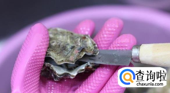 生蚝张开嘴后,在生蚝之间插入短刀,左右扭动,就能开壳了。