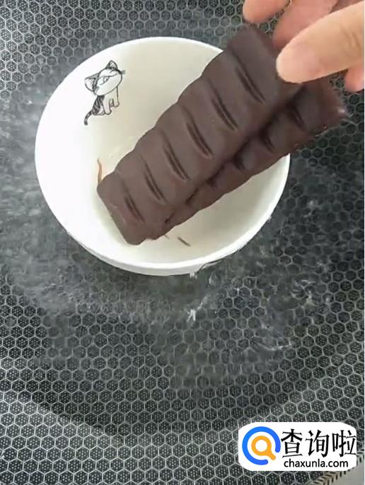 然后放入两块巧克力隔水加热至融化。