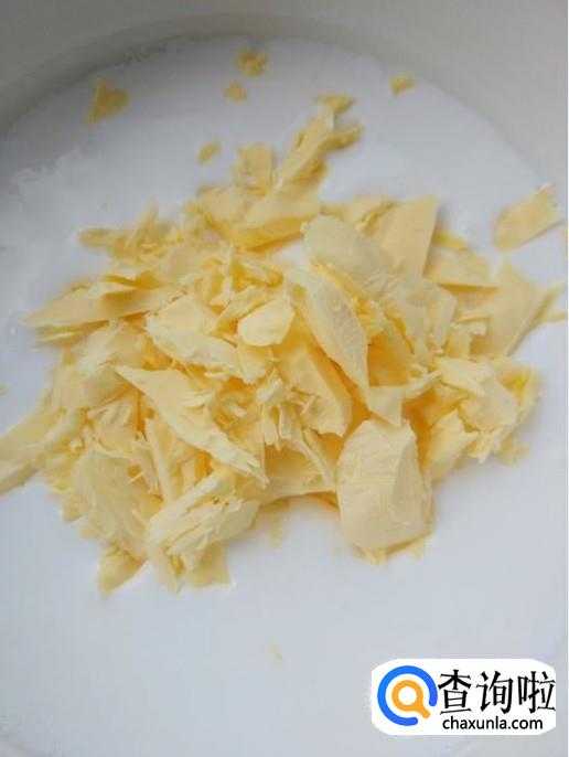 锅中烧水,放入蛋奶油隔水加热至融化,并搅拌均匀。