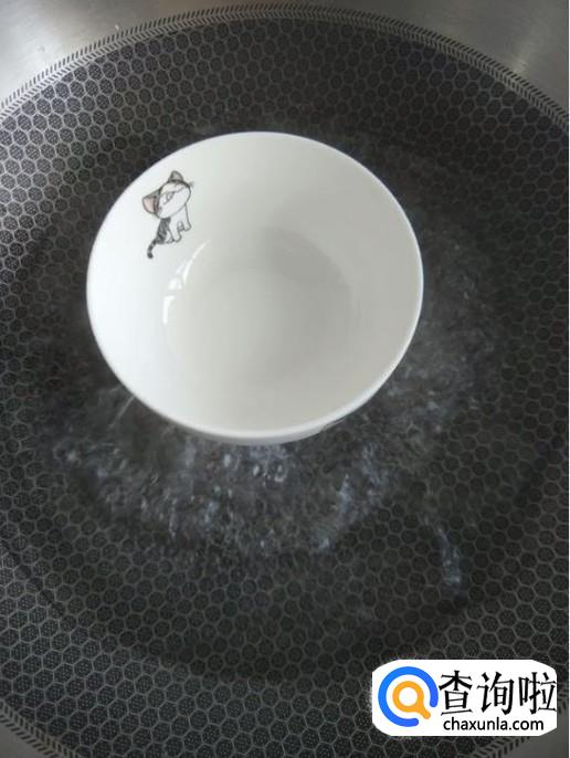 首先锅中烧水,然后放入一个碗。