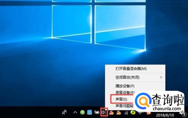 首先,我们右击电脑右下方的声音图标,弹出的界面,我们点击声音;