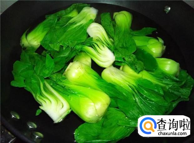 锅里烧开一锅水,放入清洗好的上海青,加入少许的盐。