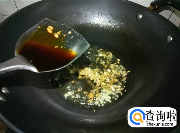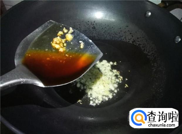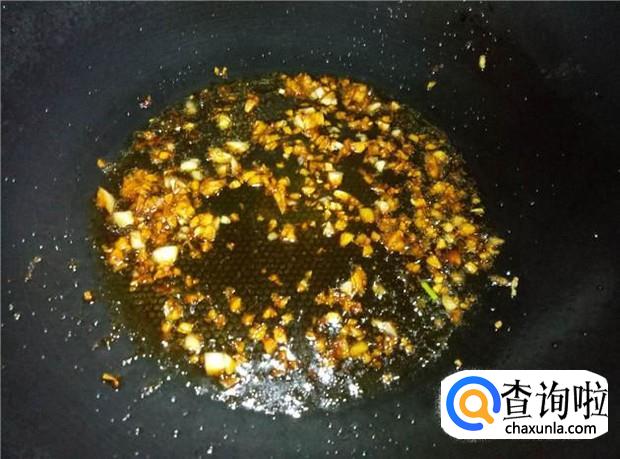 热锅下油,放入蒜蓉煸香;