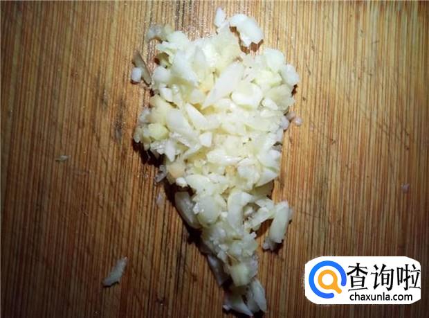 蒜头用刀背拍扁,剁成蒜蓉;