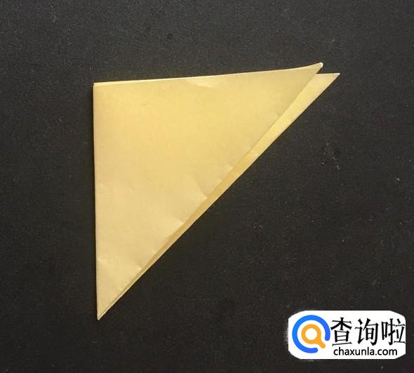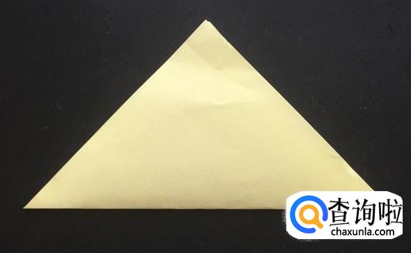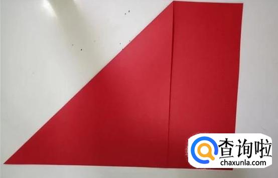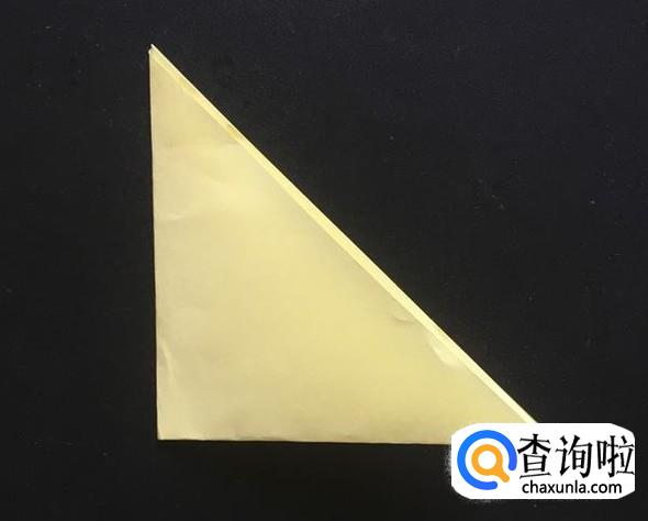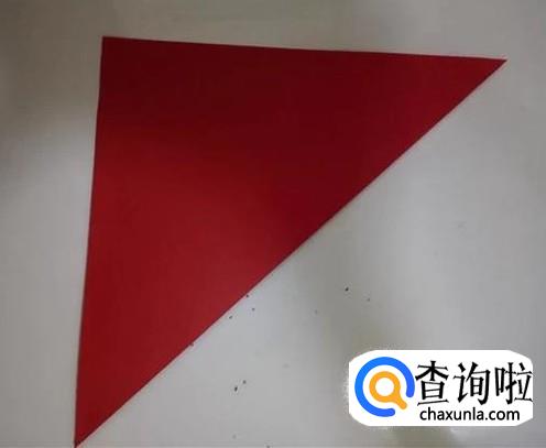 之后我们将彩纸的长边和短边对齐,折出一个三角形,如图所示。