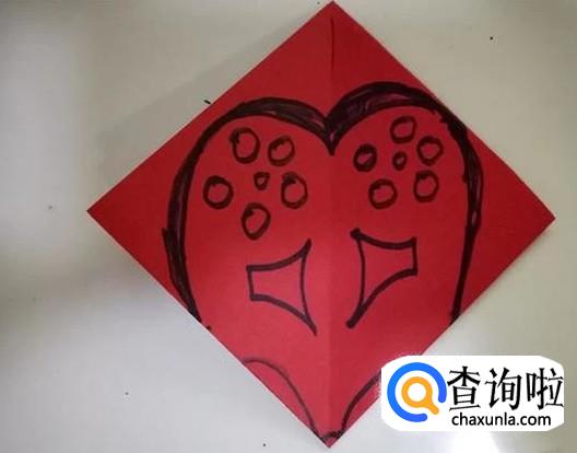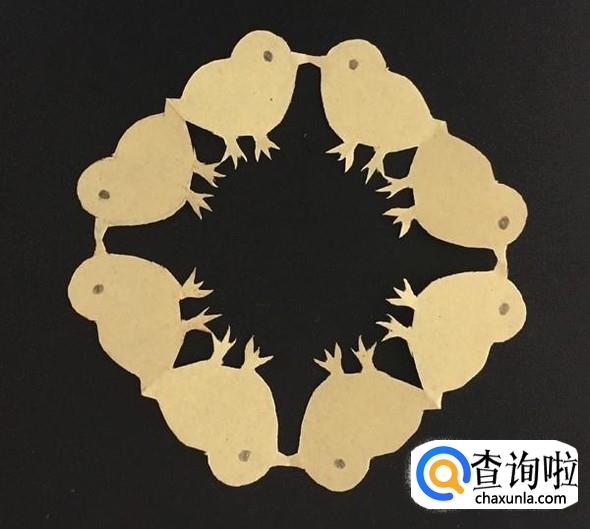 最后,小心地将剪纸打开,并画上小鸡的眼睛,这样一款小鸡剪纸就做好了。