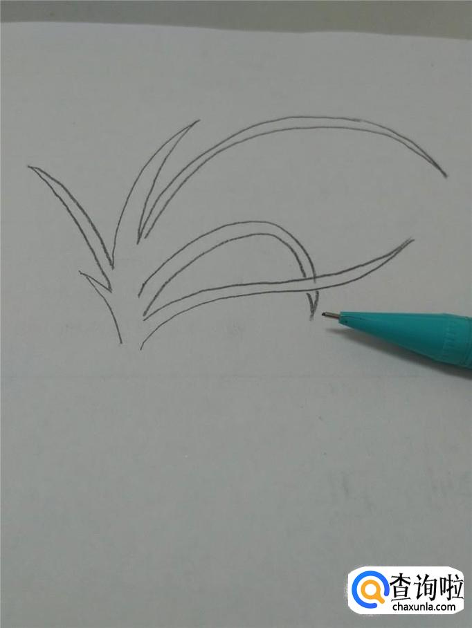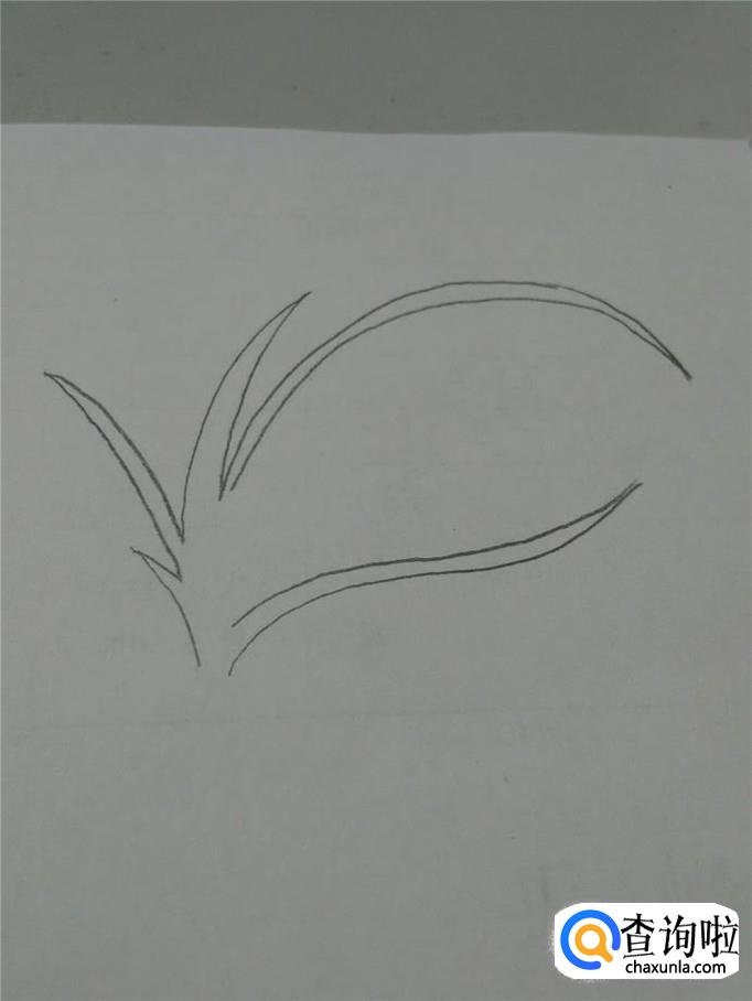 在左边再画三片兰花叶子,长短不要一致,最后一片叶子要跨到右边,长长的,弯弯的,显出兰花的美。