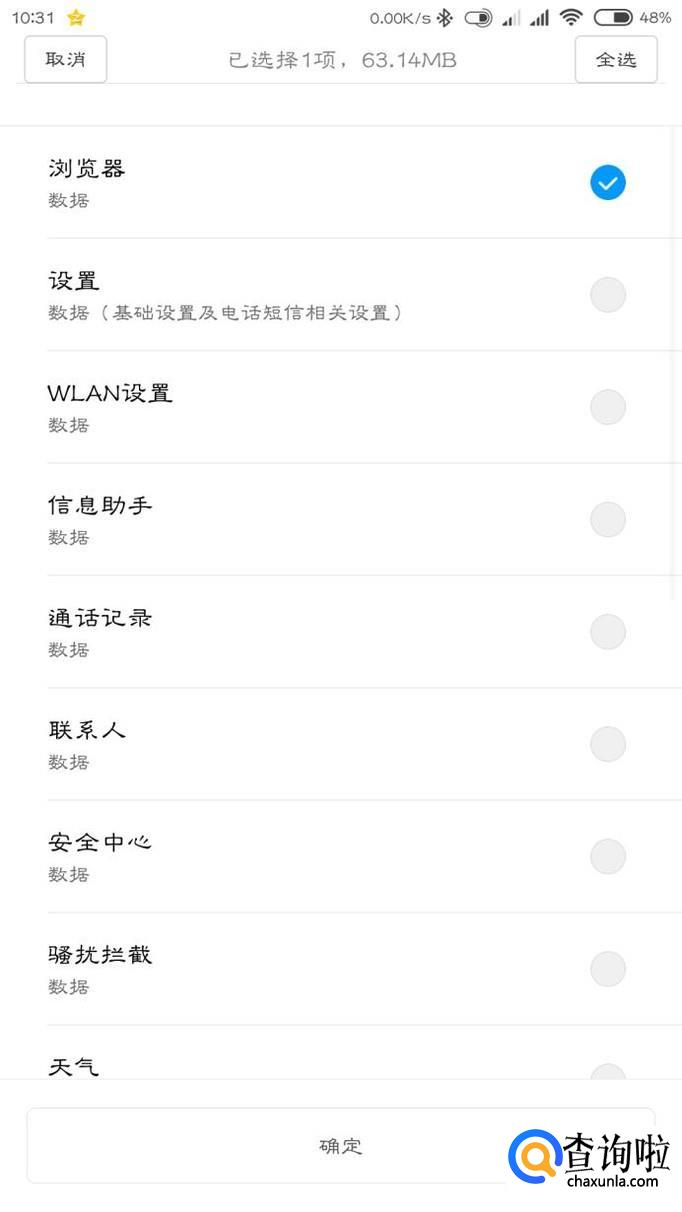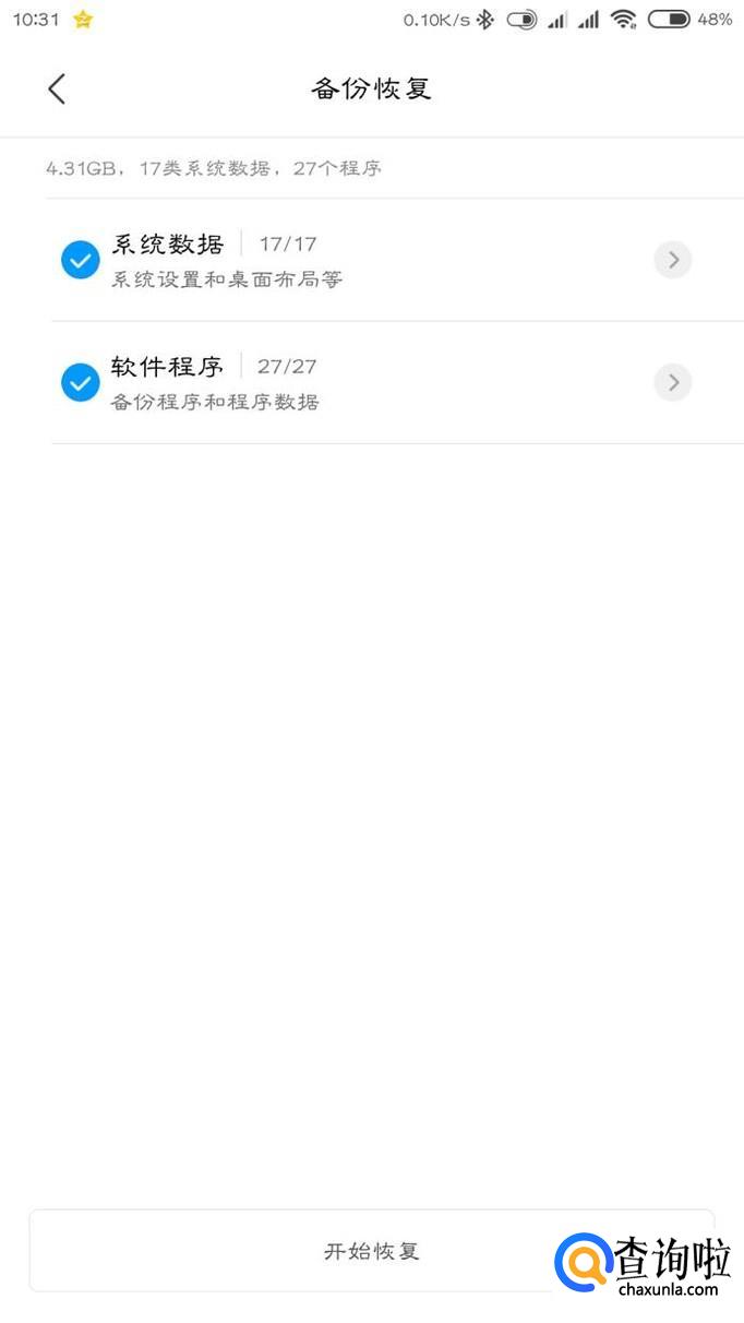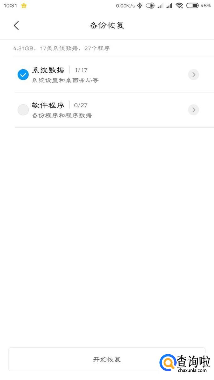 选择最近的一次备份,先取消勾选其他的所有数据,然后在系统数据中勾选浏览器,点击开始恢复就能找回数据了。