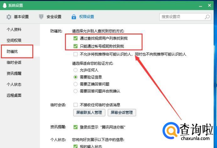 接着点击左侧的防骚扰选项,勾选红框中的复选框,如下图所示