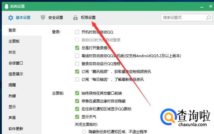 然后在系统设置界面中点击权限设置选项,如下图所示