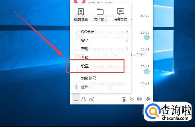 首先点击QQ左下角的三个横线,在弹出的界面中选择设置选项,如下图所示