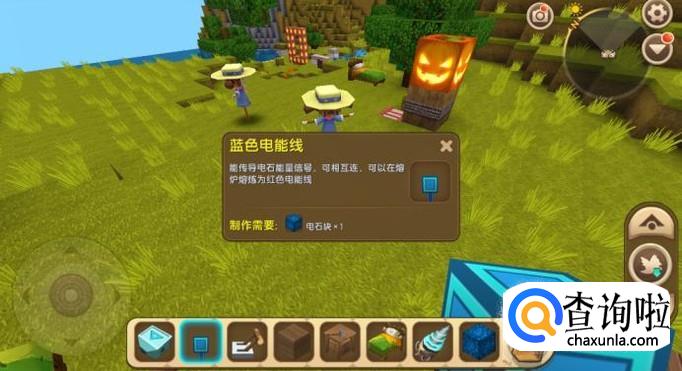 然后用电石矿制作一些蓝色电能线,再用蓝色电能线、岩石和硅石制作电能比较器。