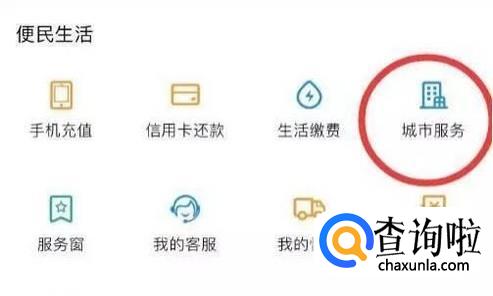 登入到支付宝的主界面后,在支付宝主界面找到城市服务,然后点击进入到城市服务的主界面。