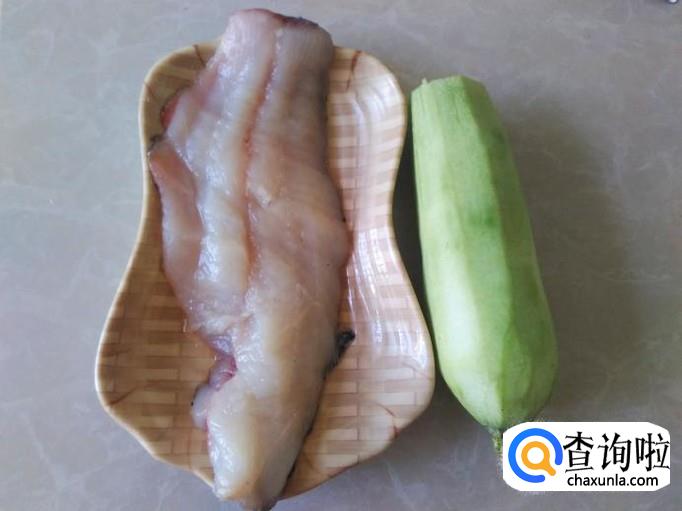 把丝瓜去皮,大头鱼肉准备好。