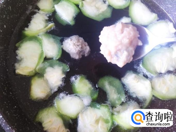 锅里装适量的水煮沸,然后放丝瓜进去,加2勺香油、适量的盐,煮10秒左右。
