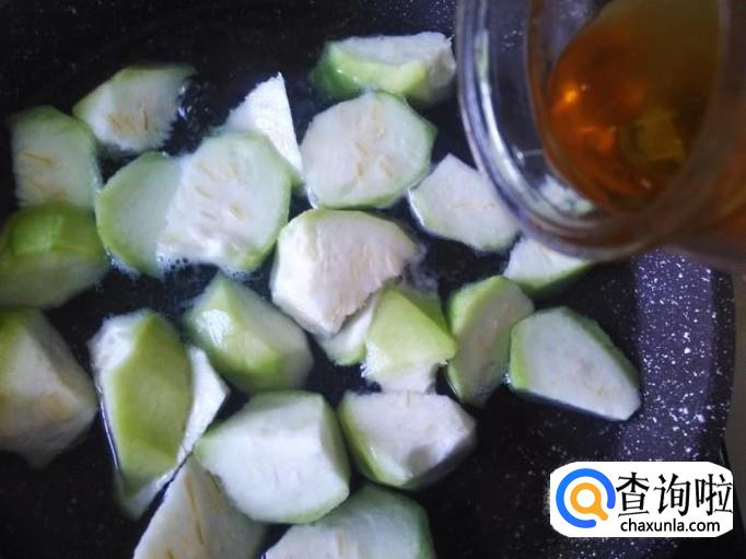 丝瓜切成棱角块。