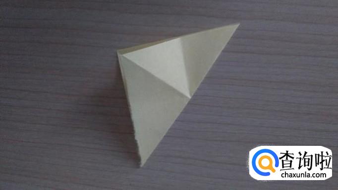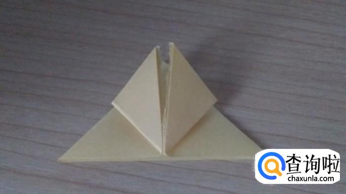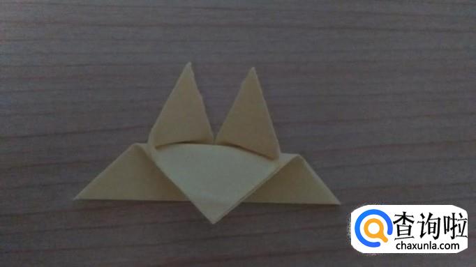 接着将一个面的三角形的两个角往上折,对齐并压实,如下图所示。