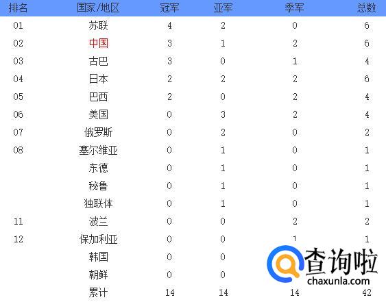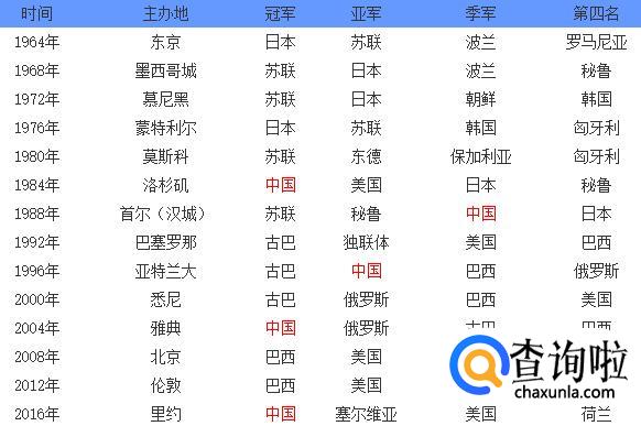奥运会女排金牌榜: