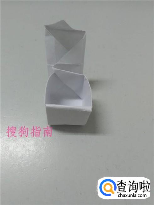 把最上方的角往内侧折一下,插进折好的小盒子里,带盖的小盒子就折好了。