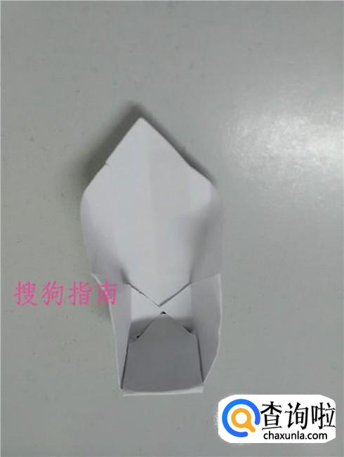 将下面左右两边向中间立起来,然后将最下面的角向上折,将左右两边压住。