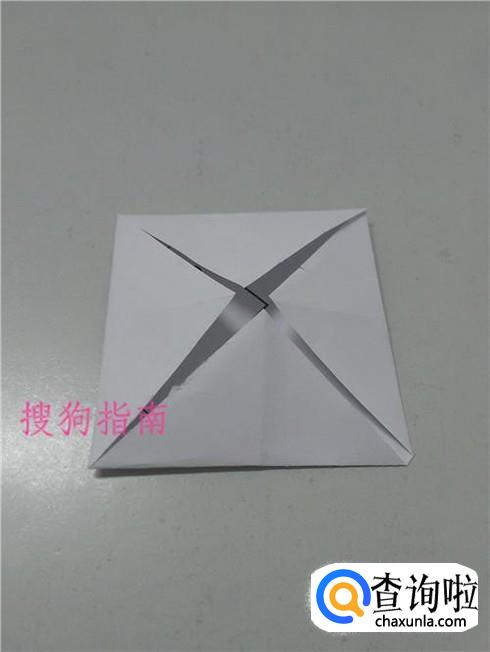 将正方形四个角向中间对折。