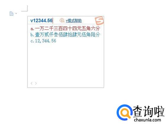 点击键盘输入“V”,输入了V之后直接在后面输入相应金额的阿拉伯数字,如图所示可以看到出现相应的大写金额。
