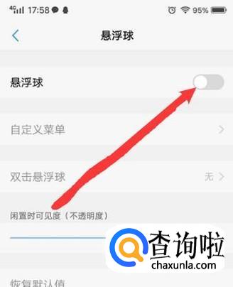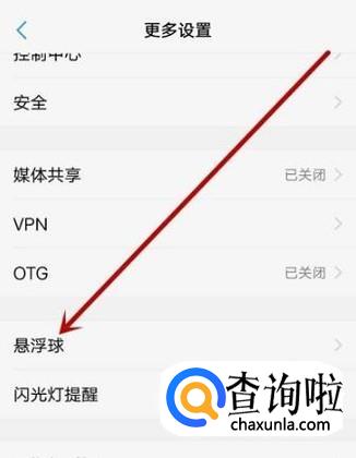 在设置界面,找到“悬浮球”,点击并进入,如图所示。