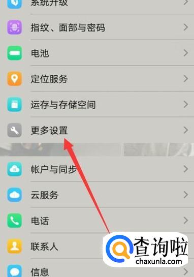 进入之后,找到“更多设置”,点击并进入,如图所示。