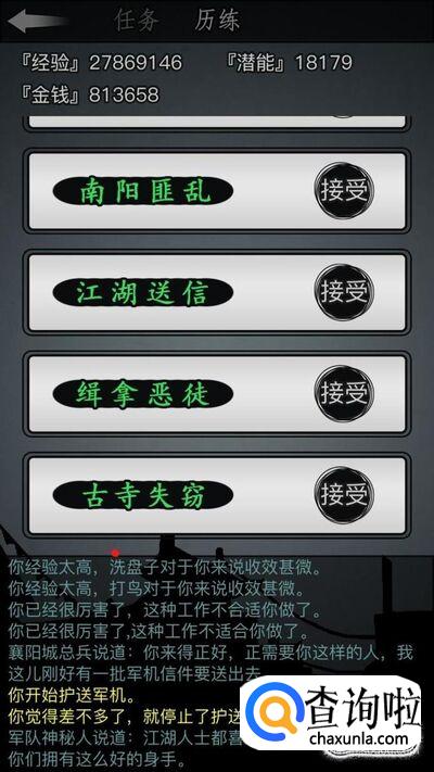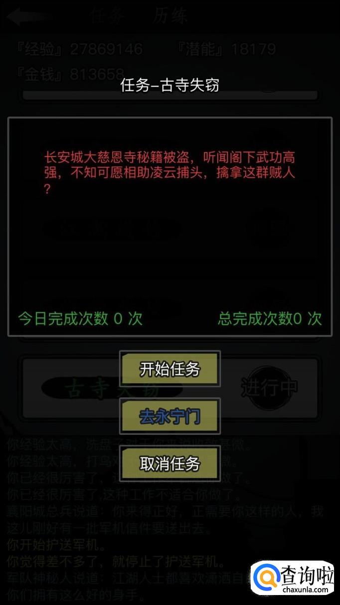 首先我们在历练里面点击古寺失窃,然后领取该任务。