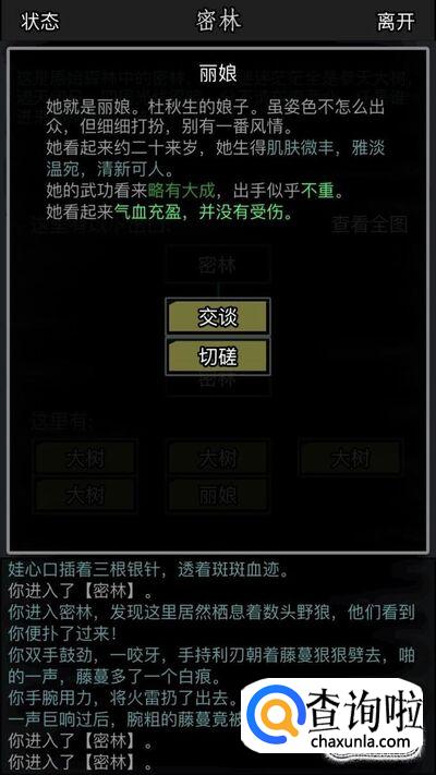 然后切磋丽娘,打败之后接着和杜秋生对话,然后往前走。
