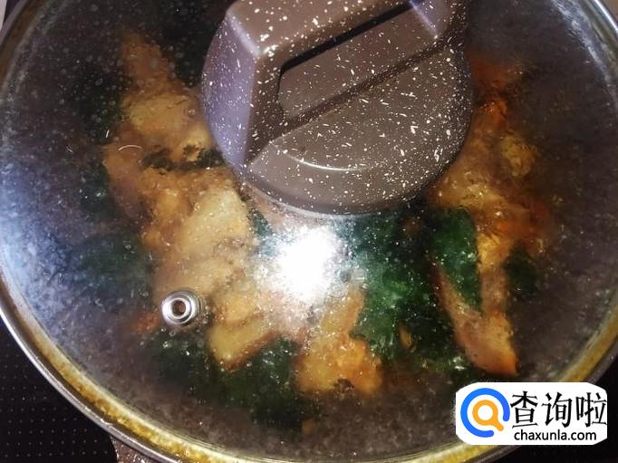 放2小勺水,盖上盖子小火焖3分钟左右。