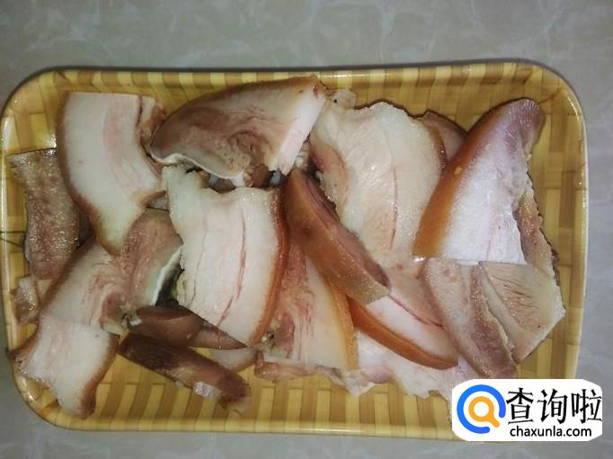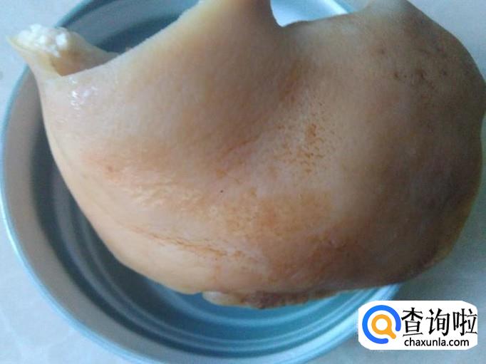 把煲熟了的猪头皮切成片。