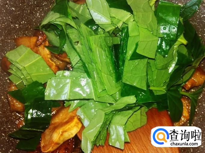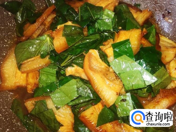 打开盖子翻炒一下,熄火。香喷喷的假蒌炒猪头皮就做好了。