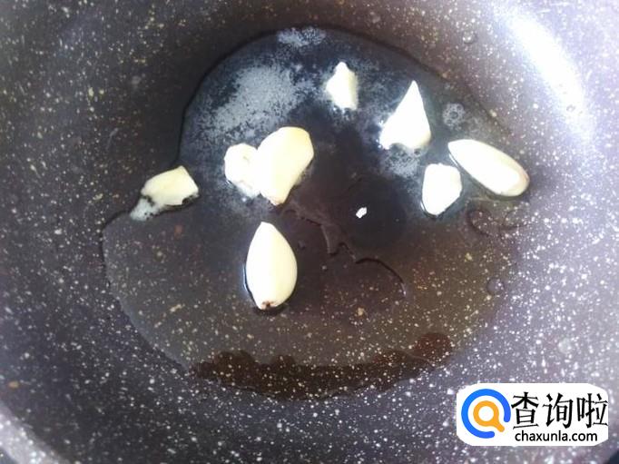 开火下油,放蒜米进去爆香。