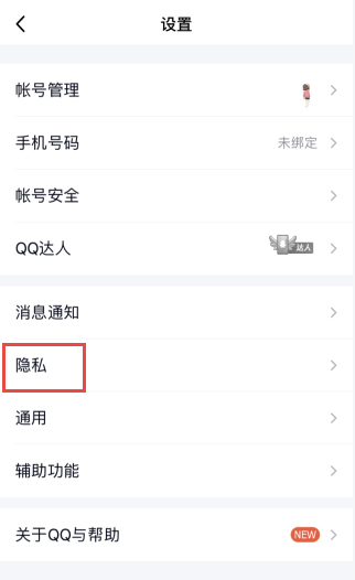 2、进入设置界面,找到并点击隐私;