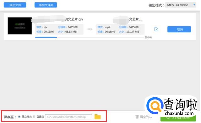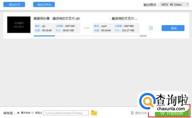 全部设置好之后,我们再点击右下角的【开始转换】,这样视频qlv的格式就被转换成MP4的格式啦。